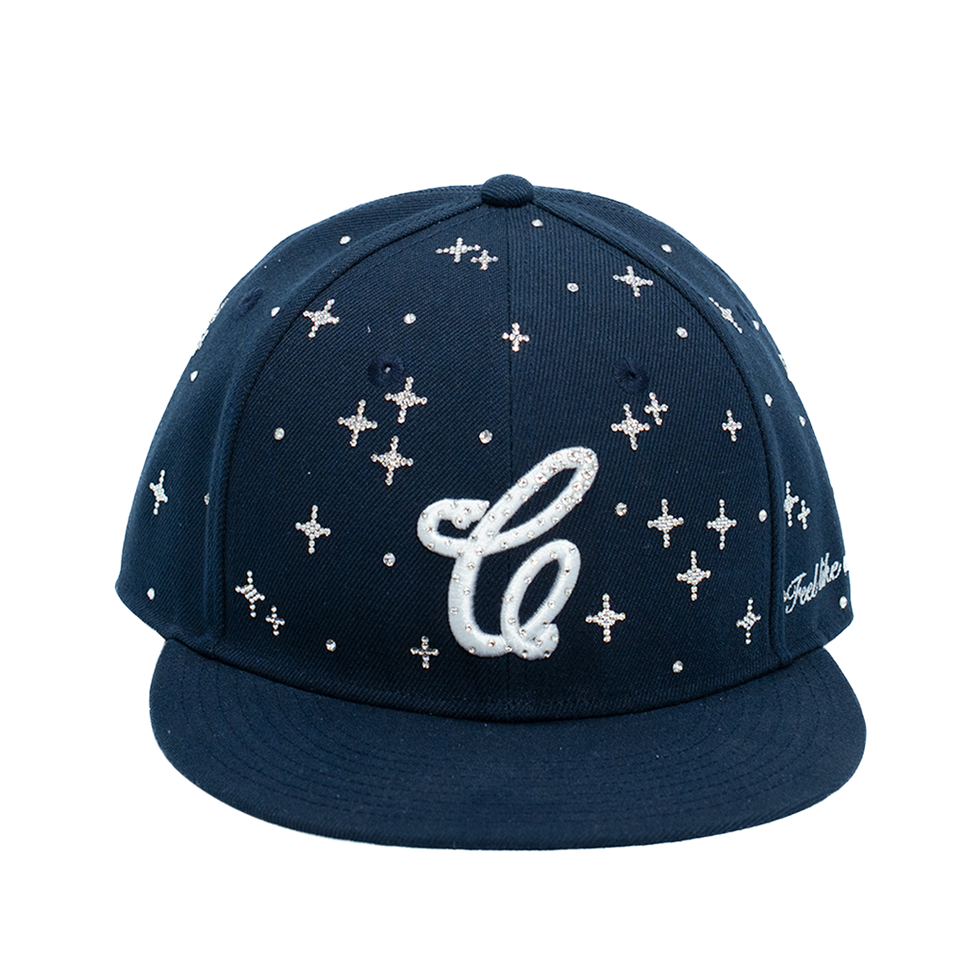Couture uses swarovski crystal only, on every hat, each crystal is hand placed to create a one-of-one work of art.